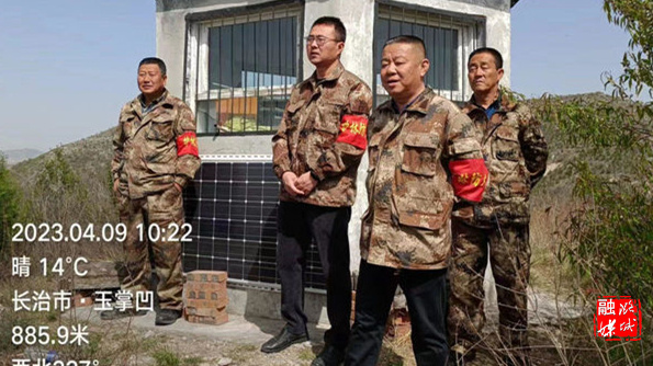 ▲区融媒体中心工作人员在包联村开展护林防火值班值守工作。