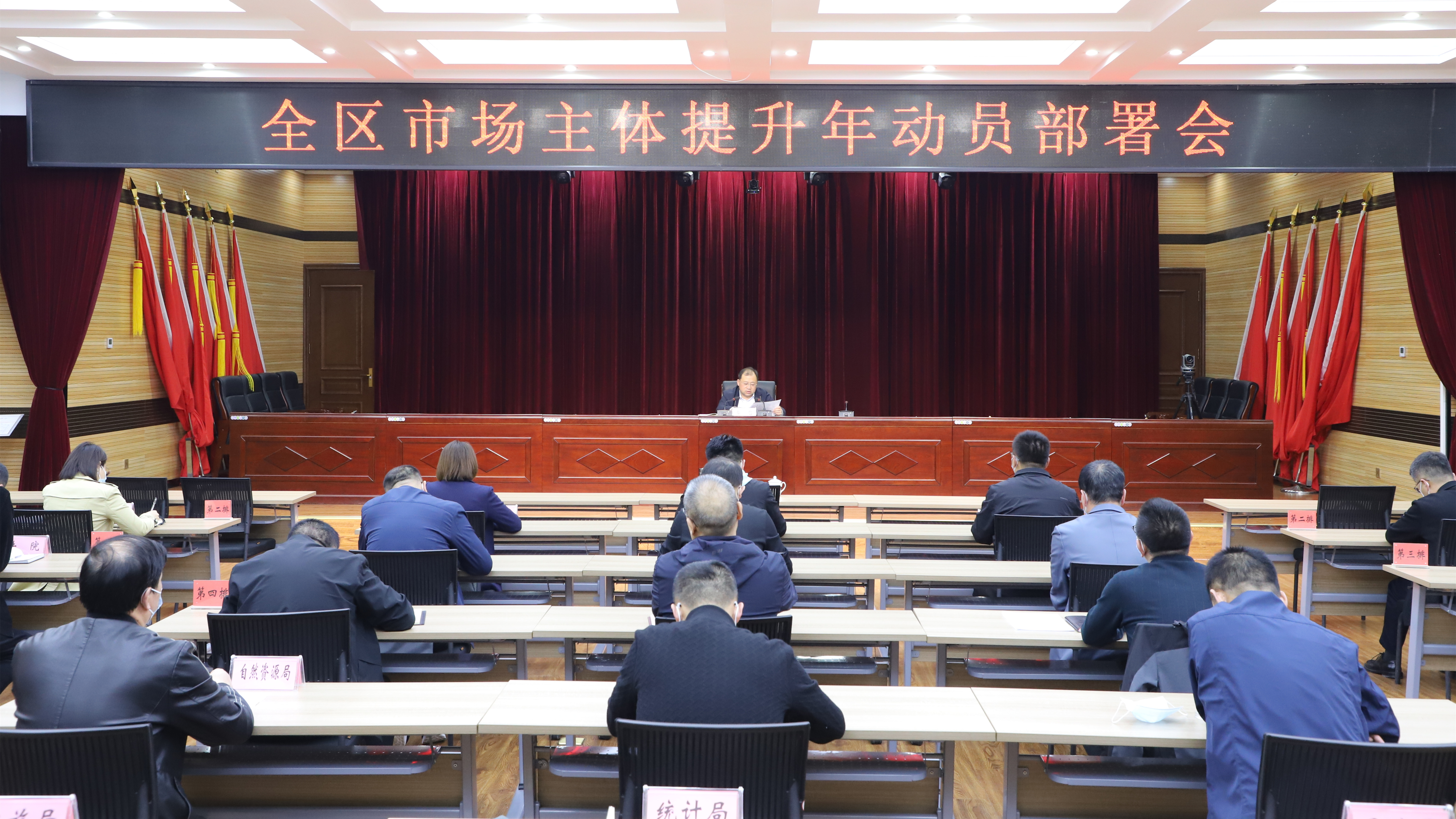 全省视频会议结束后,我区立即召开会议,就深入开展市场主体提升年活动进行动员部署。