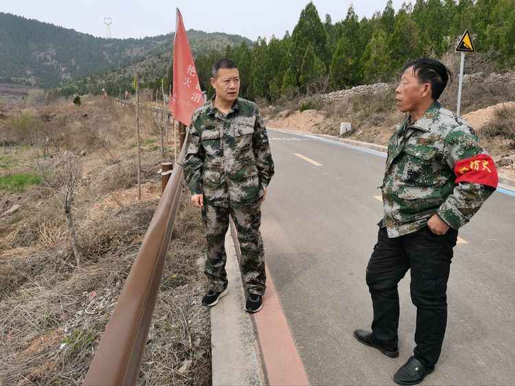 ▲4月9日,区市场监管局工作人员在合室村、堡头村、东街及中村开展护林防火值班值守。
