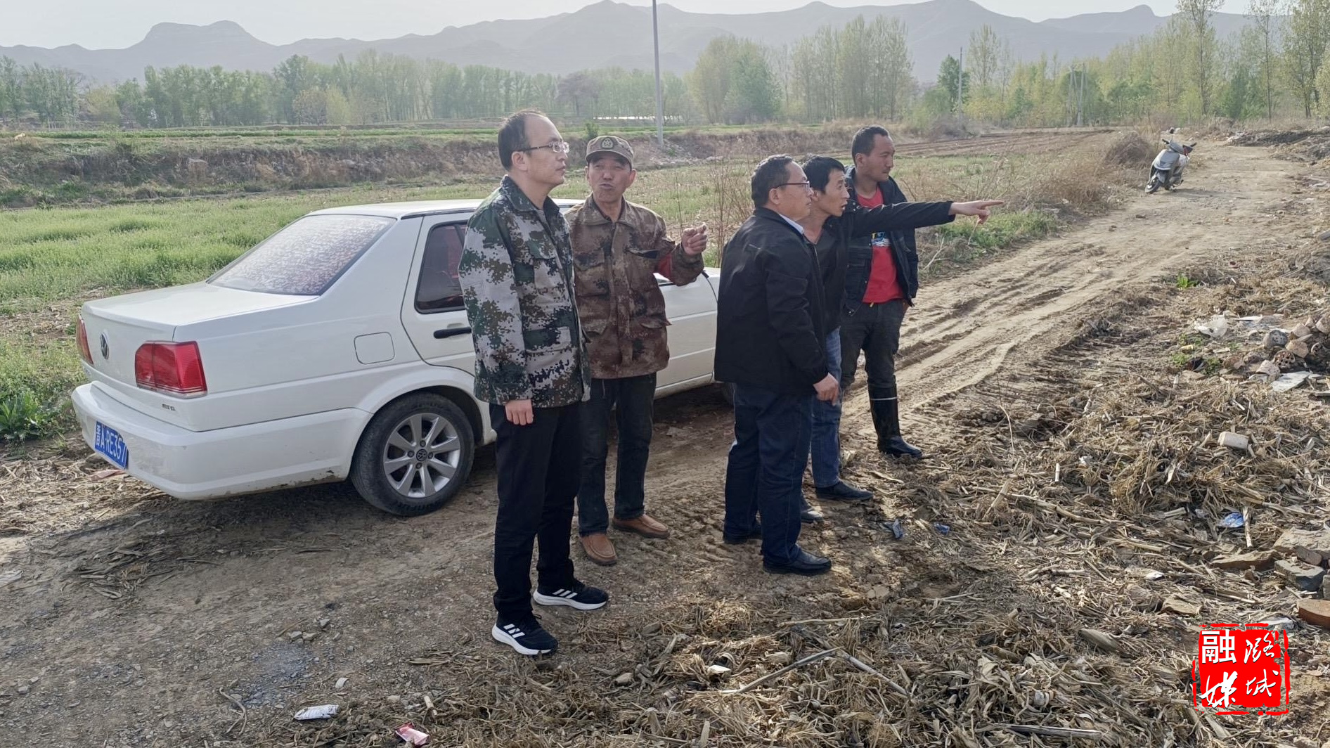 ★4月15日,辛安泉镇相关负责人在南马村实地查看水毁堤坝修复工程进展情况。