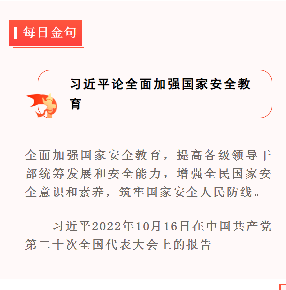 今年4月15日是全国第8个全民国家安全教育日,为全面贯彻落实总体国家安全观,加强全民国家安全意识和素养。日前,区委办、区委政法委、区委宣传部等单位联合开展全民国家安全教育日主题宣传活动。今年的宣传主题是“贯彻总体国家安全观,增强全民国家安全意识和素养,夯实以新安全格局保障新发展格局的社会基础”。