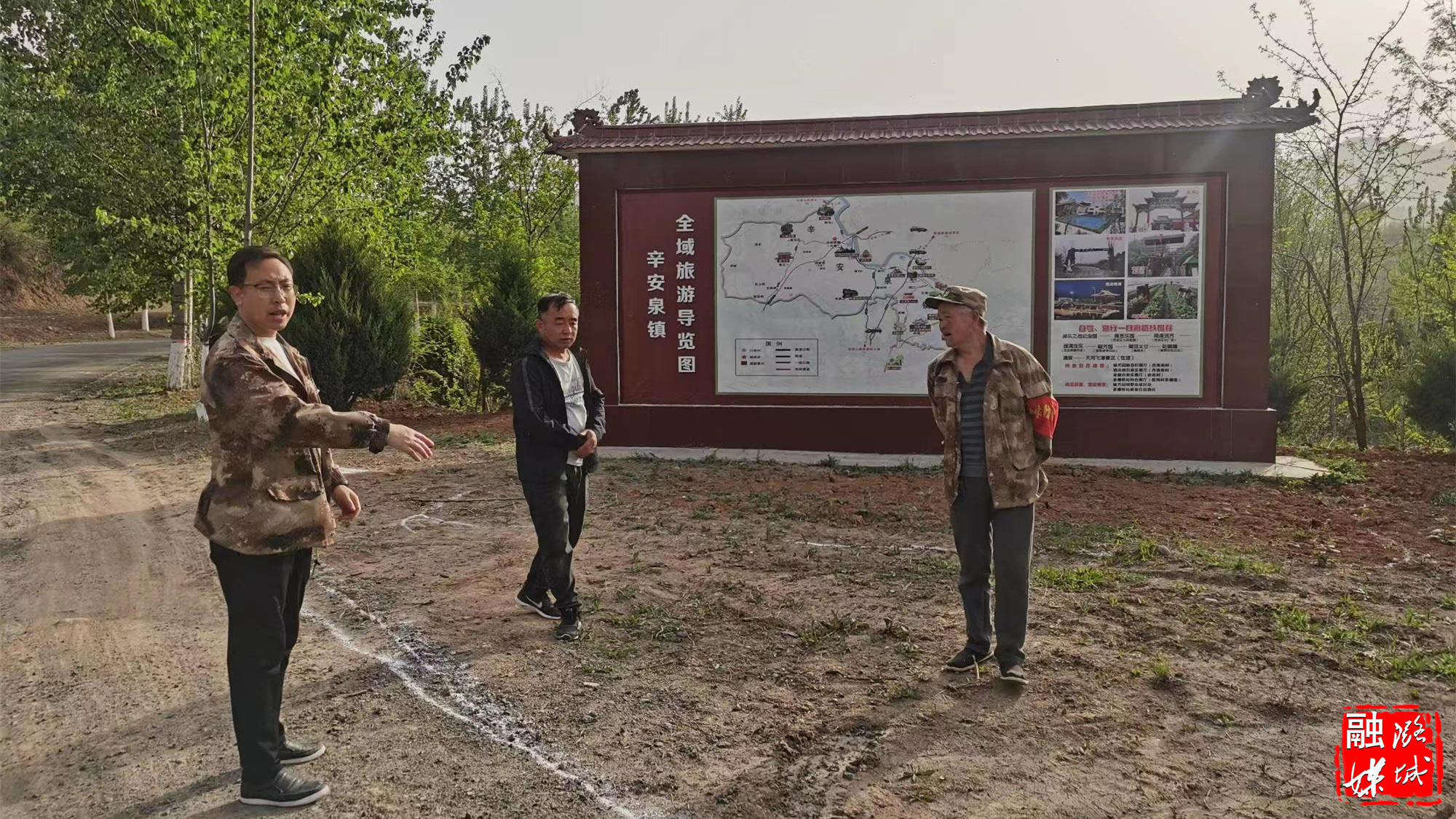 ★4月18日,辛安泉镇工作人员在续村就道路两侧绿化美化进行规划指导。
