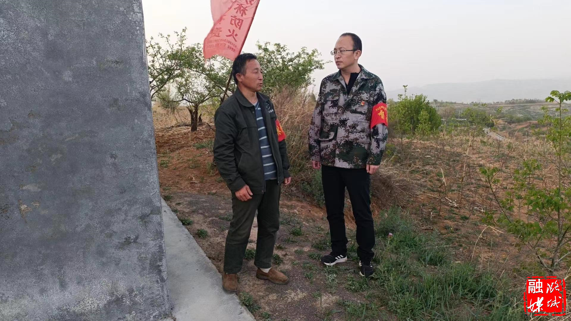 ▲辛安泉镇相关负责人在各村督导森林防火工作。