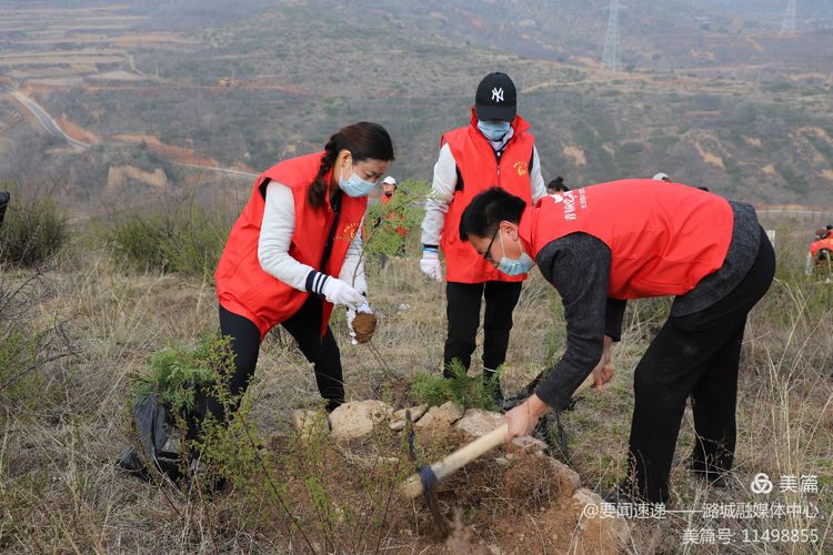 在植树现场,秦苏良等区领导同在场的干部群众一起挖土、扶苗、填土、围堰,认真完成每一道植树工序,合力栽下一棵棵树苗。经过两个多小时的劳动,23000余株侧柏全部栽种完毕。