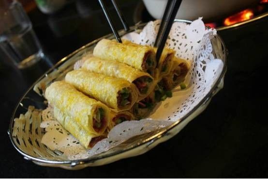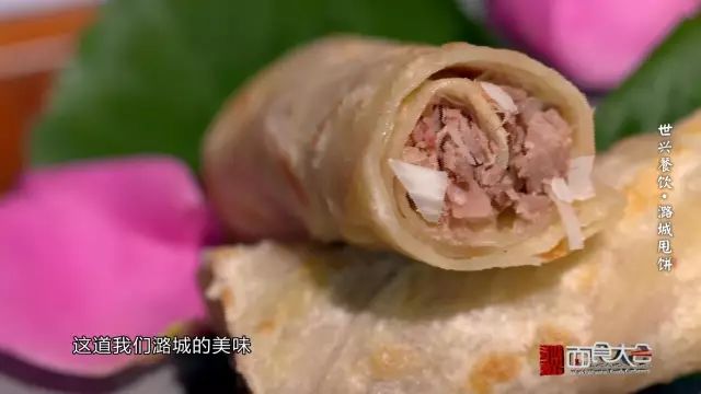 烙好的甩饼,饼面呈乳白色,火点金黄,皮脆里嫩,再撒上葱花,包上像纸一样薄的驴肉,趁热咬下,口中香气,嚼劲混在一起,回味无穷。