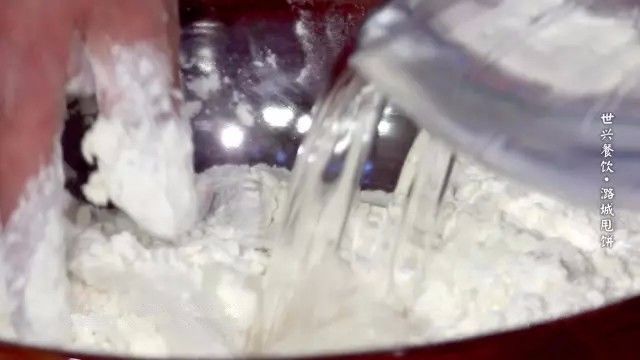 潞城甩饼在和面时,要用上白面粉和凉水和制,这样和出的面团精道有劲。