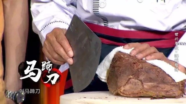 片驴肉时,要用马蹄刀左右上下转着切,这样转切下来的驴肉中间厚,两边薄。