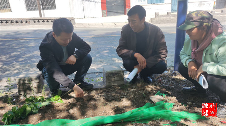 ★4月27日,黄牛蹄乡相关负责人到黄牛蹄村324省道沿线查看花草出苗情况。
