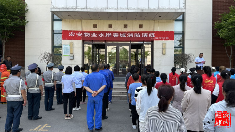 ★5月19日,宏安物业、滨河社区组织物业工作人员、部分居民在水岸春城小区联合开展应急消防演练。