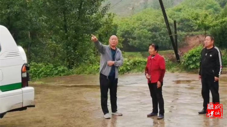 ▲黄牛蹄乡相关负责人到土脚村查看防汛应急值守及河道安全情况。