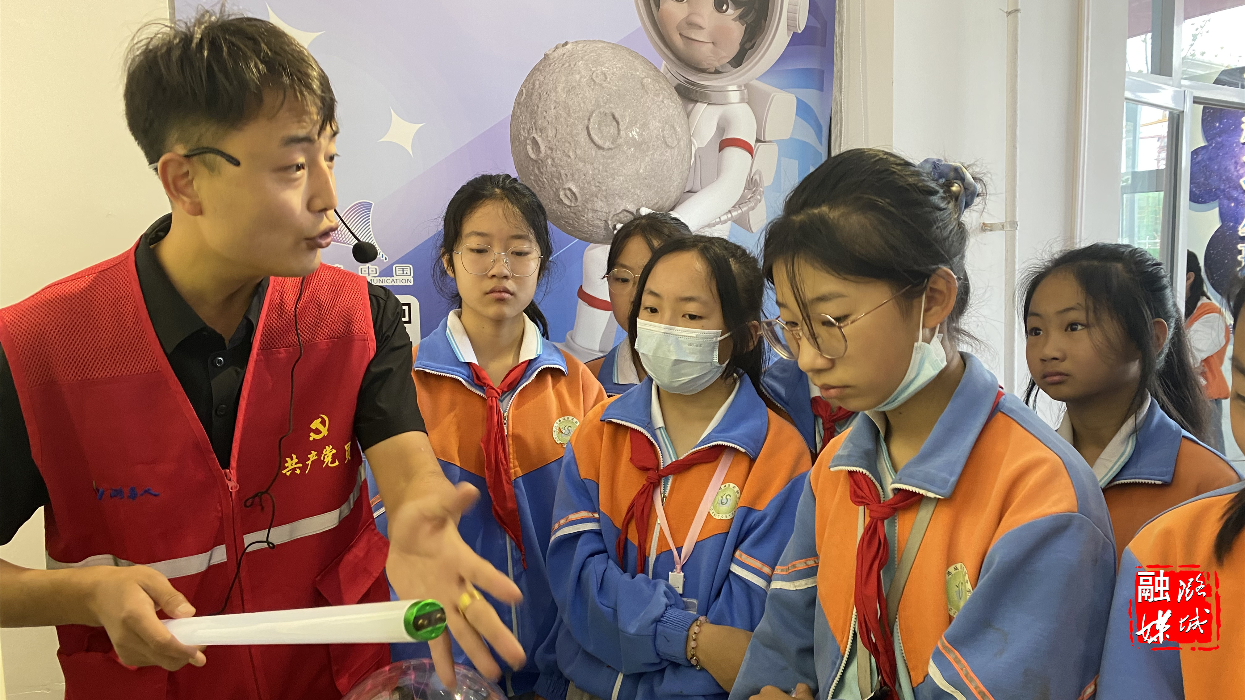 滨河社区组织实验中学小学部的学生们到新时代文明实践站科普馆开展“创新之星璀璨 科学理想浩瀚”科普参观体验活动。有的同学饶有兴趣的亲自动手操作,还有同学与志愿者认真互动,现场气氛热烈。