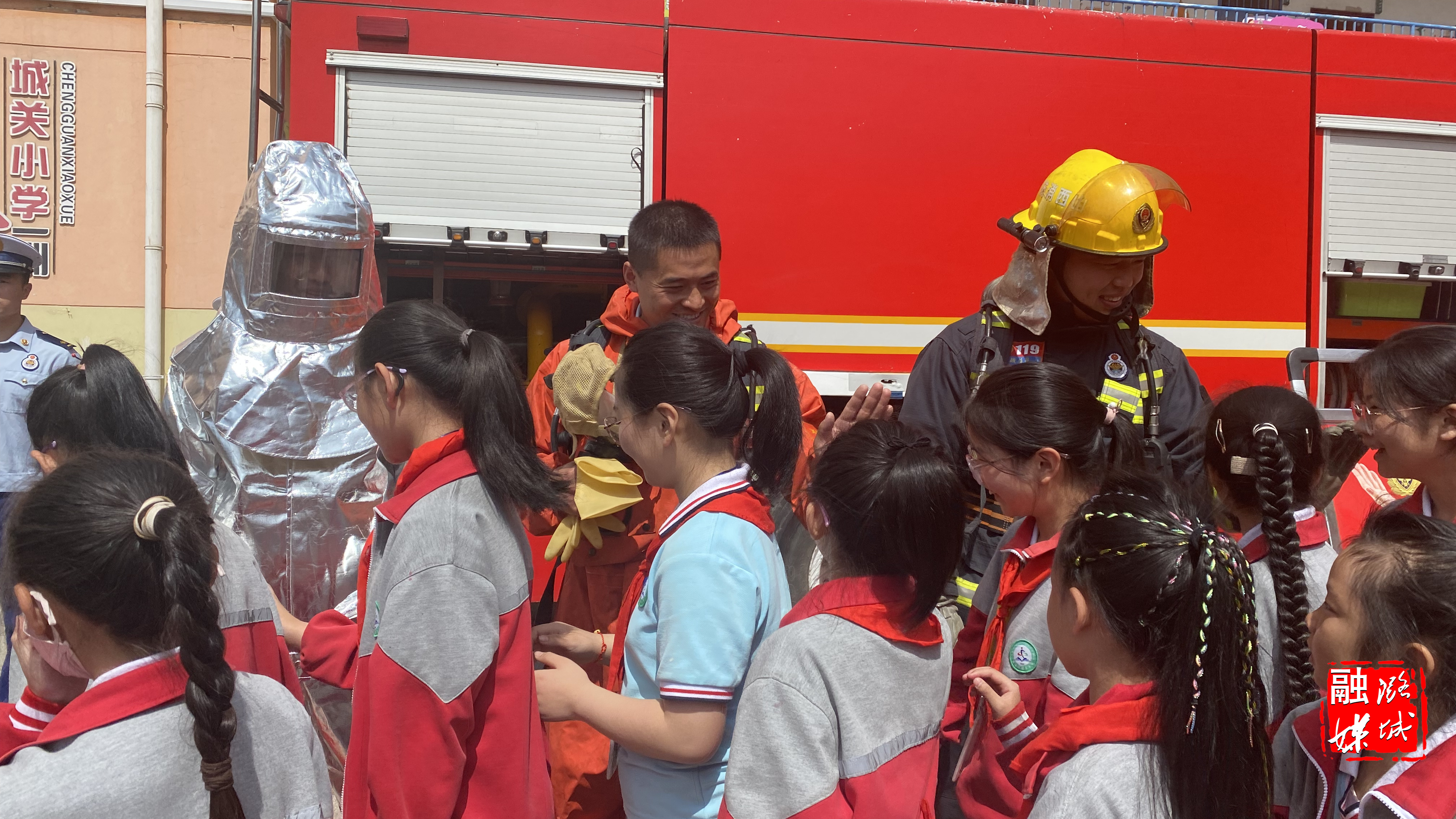 启动仪式后,消防指战员为学生们介绍了各种消防装备,高压水枪、水带、消防面具等常用工具,部分学生还进行了活动体验。