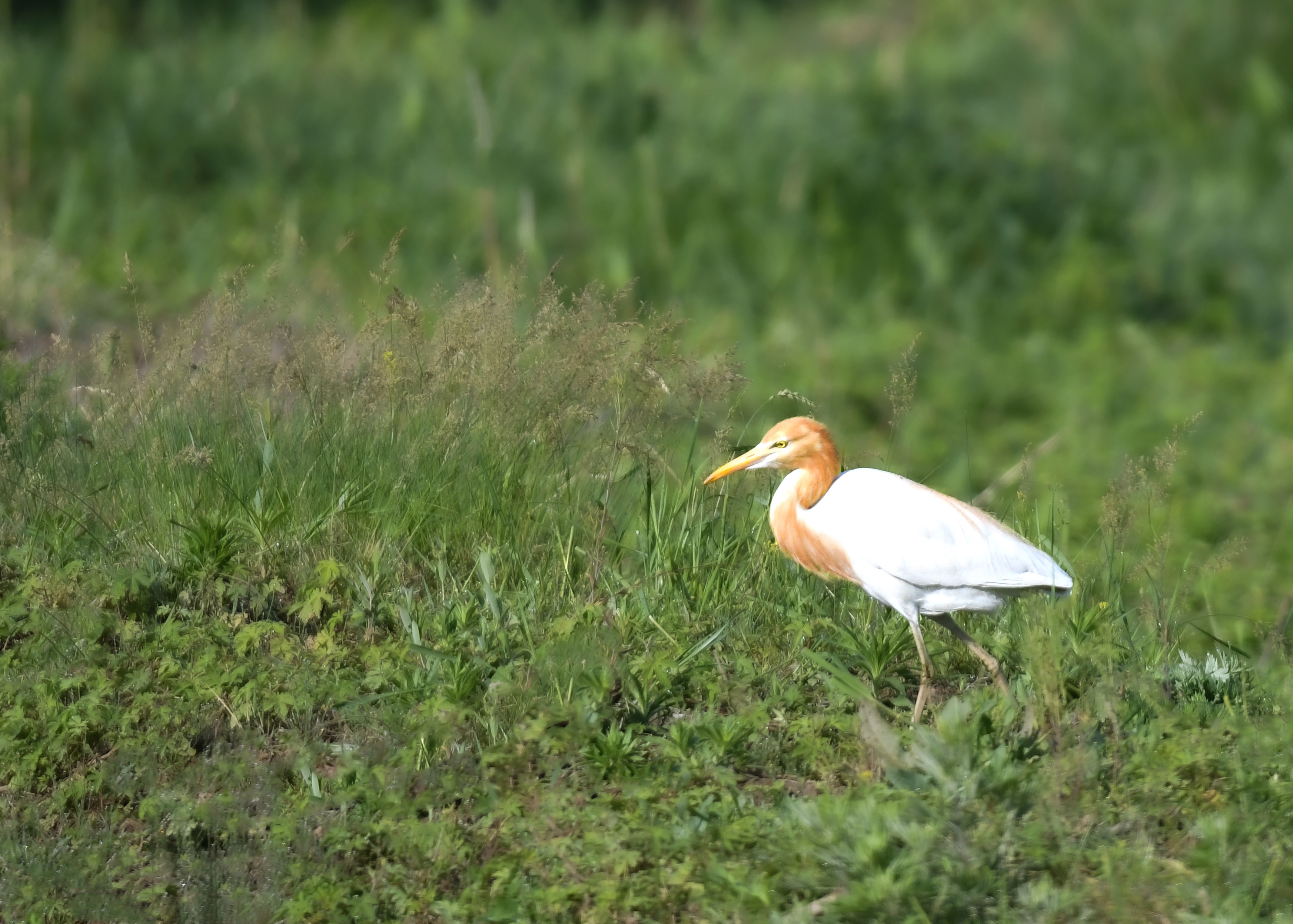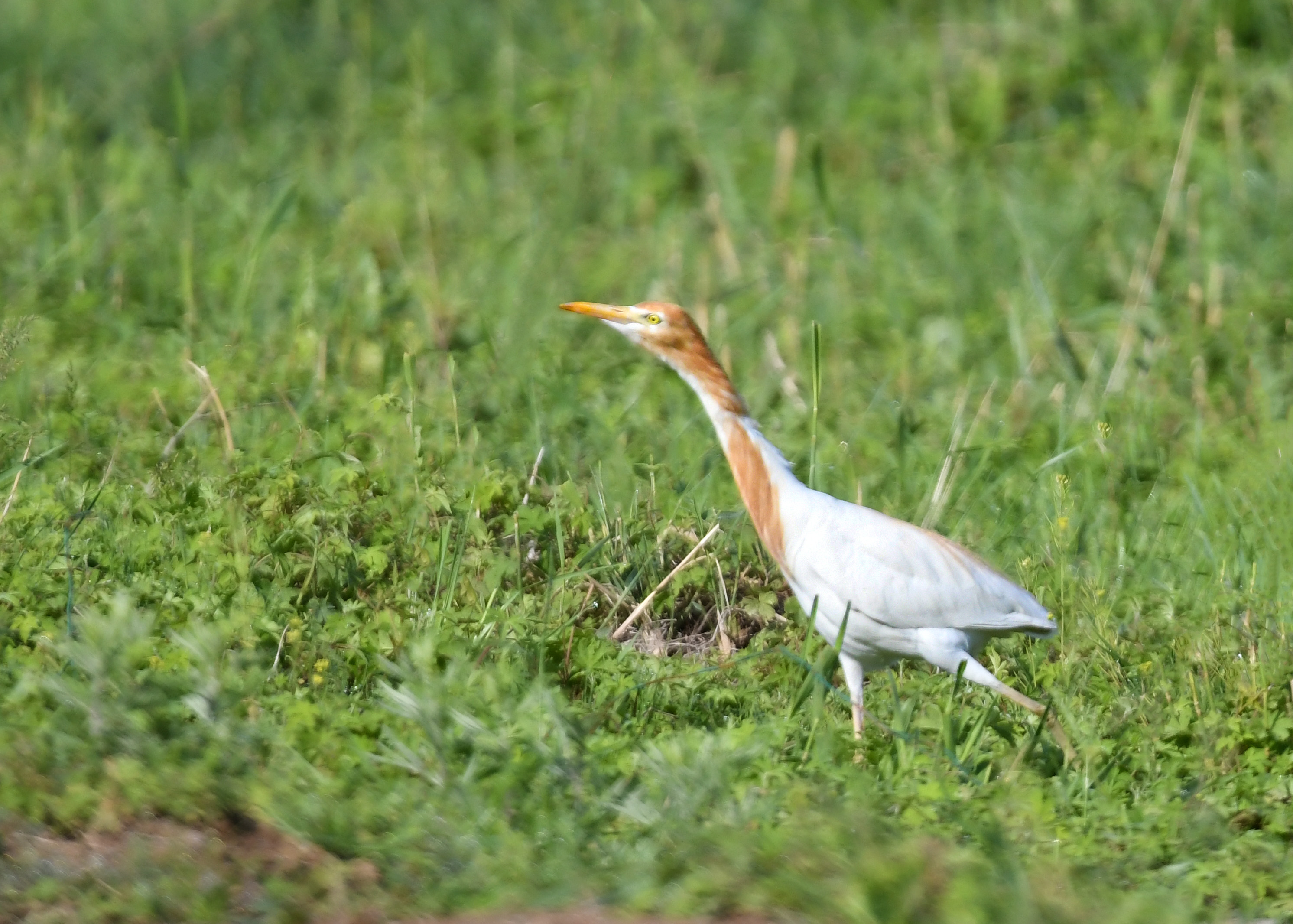 牛背鹭是国家二级保护动物,常栖息于低山、平原的稻田、牧场及沼泽地。其体较肥胖,喙和颈较短粗,它是目前世界上唯一以昆虫为主食的鹭类,常捕食被家畜从水草中惊飞的昆虫,与家畜,尤其是水牛形成了依附关系,由于常在牛背上歇息,而因此得名。