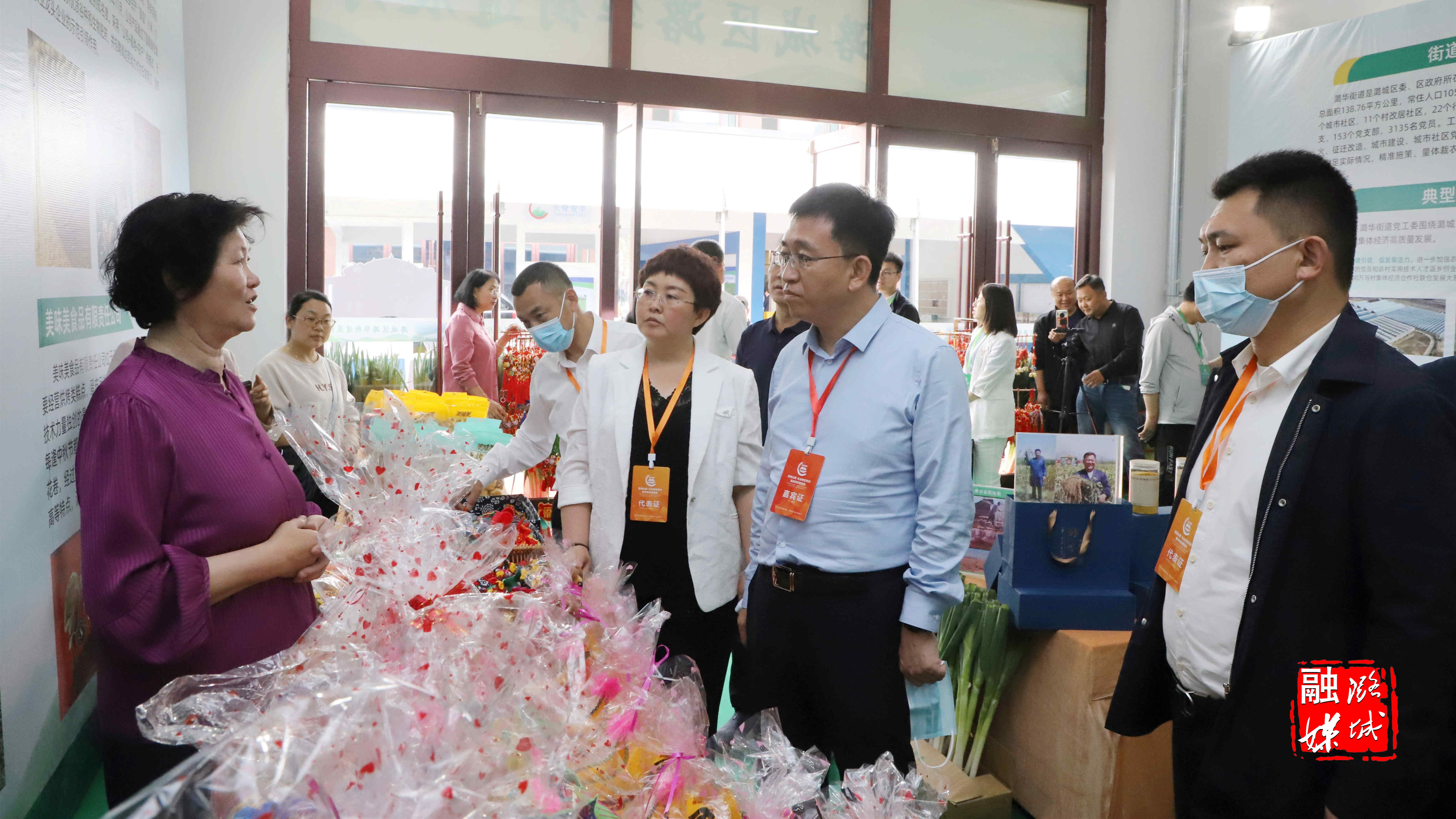 会展现场人潮涌动、热闹非凡。在我区各展厅内,大葱、小米、西红柿酱、陈醋、食用菌、琪炒、驴肉、潞王虎、根雕等各色展品陈设整齐、琳琅满目。绿色优质的农特产品不仅展示了我区壮大提质新型农村集体经济过程中的丰硕成果,也吸引了许多前来观展的市民驻足问询、品尝购买。