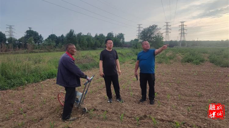 ★6月3日,店上镇相关负责人到洪岭村查看大豆玉米带状复合种植情况。