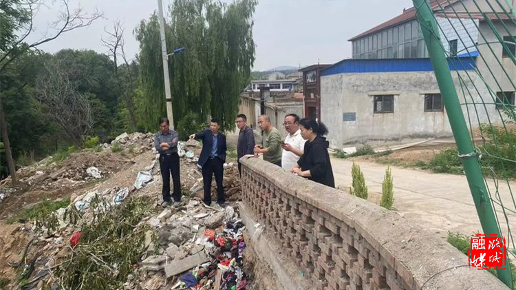 ▲微子镇负责人在部分村督导环境卫生整治工作。