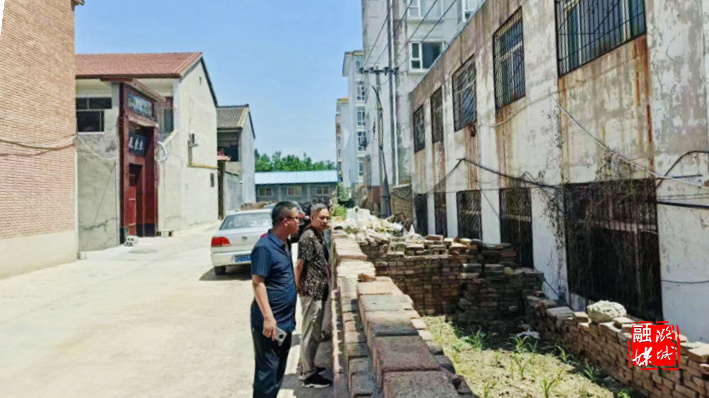▲微子镇相关负责人查看人居环境整治项目进展情况。
