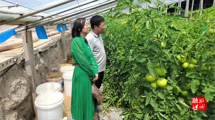 ★6月7日,微子镇相关负责人在西靳村高标准蔬菜大棚示范基地查看项目建设情况。