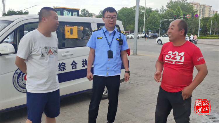 ▲潞华街道安环站工作人员联合区城市综合行政执法局对南华社区露天喷涂作业进行督查整改。