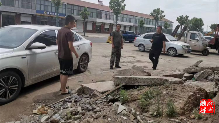 ▲微子镇相关负责人在微子村督查环境卫生整治工作。