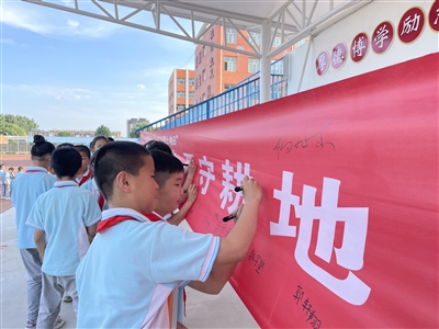 6月24日下午,该局工作人员还来到第二实验小学通过宣传讲解、发放宣传手册、悬挂宣传标语、摆放宣传展板等方式,让学生们进一步了解我国土地资源的国情国策。